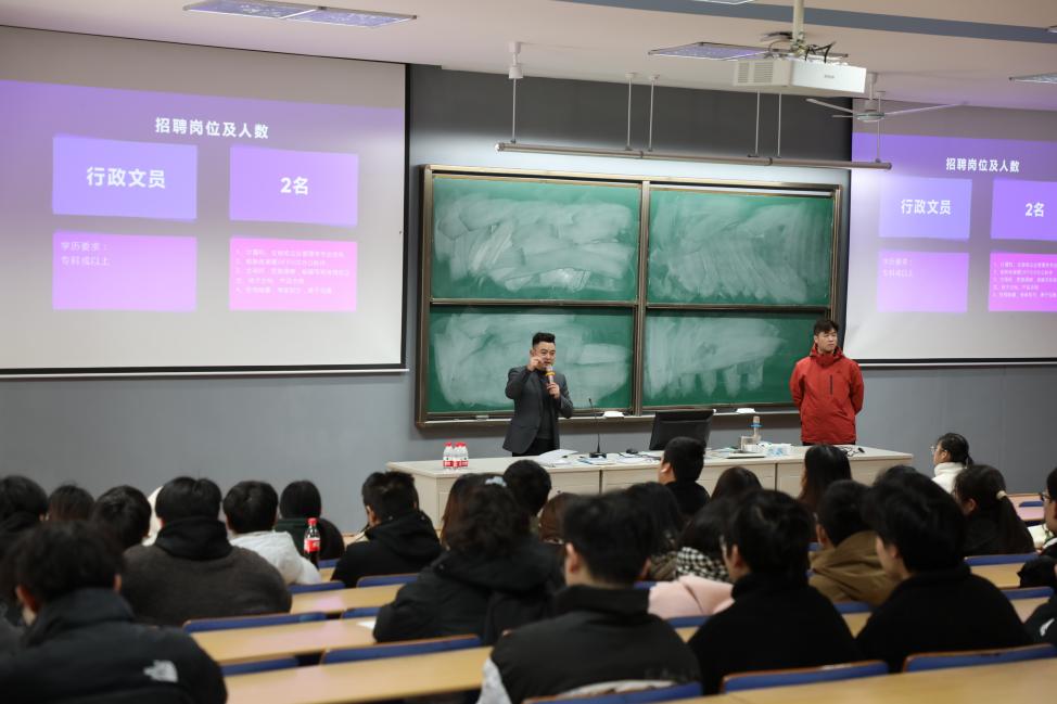 宣讲会上,企业负责人陈卫东为同学们详细讲解企业文化、发展历程、薪资福利、岗位招聘等要求,并现场与同学们进行问答交流,让同学们充分了解到企业信息,从而选择自己心仪的实习岗位投递简历。