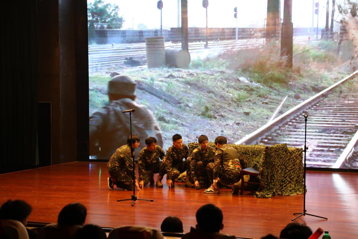 学院“红匠”退伍军人服务队的同学以昂扬挺拔的身姿、强烈的感染力和表现力带来舞台剧《坚守》,用一句句爱国诗词演绎出坚守前线的战士们硝烟里同生共死的战友之义、坚守不退的家国之责,让现场观众深深共情。
