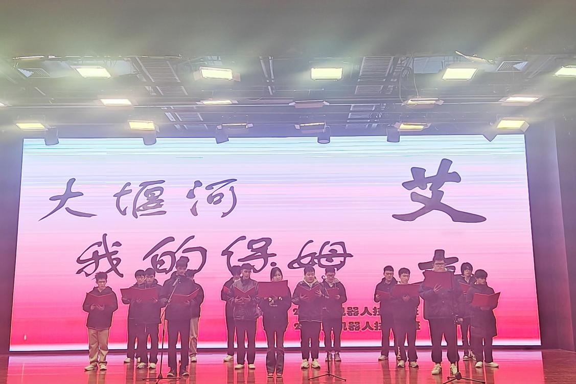 23工业机器人技术1班等班级朗诵的《大堰河 我的保姆》表达了对善良淳朴、勤劳苦干、自强不息的劳动人民的赞美。