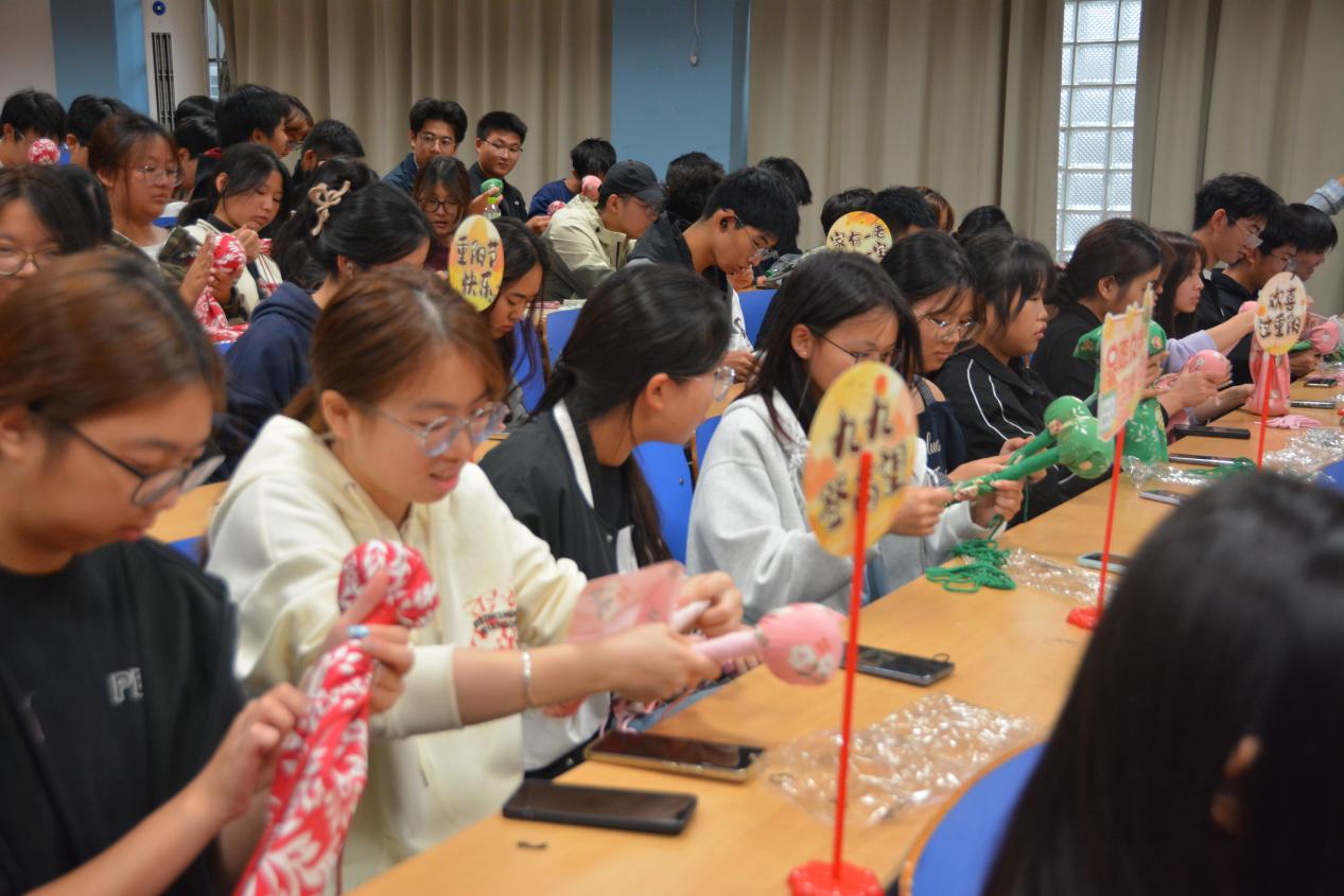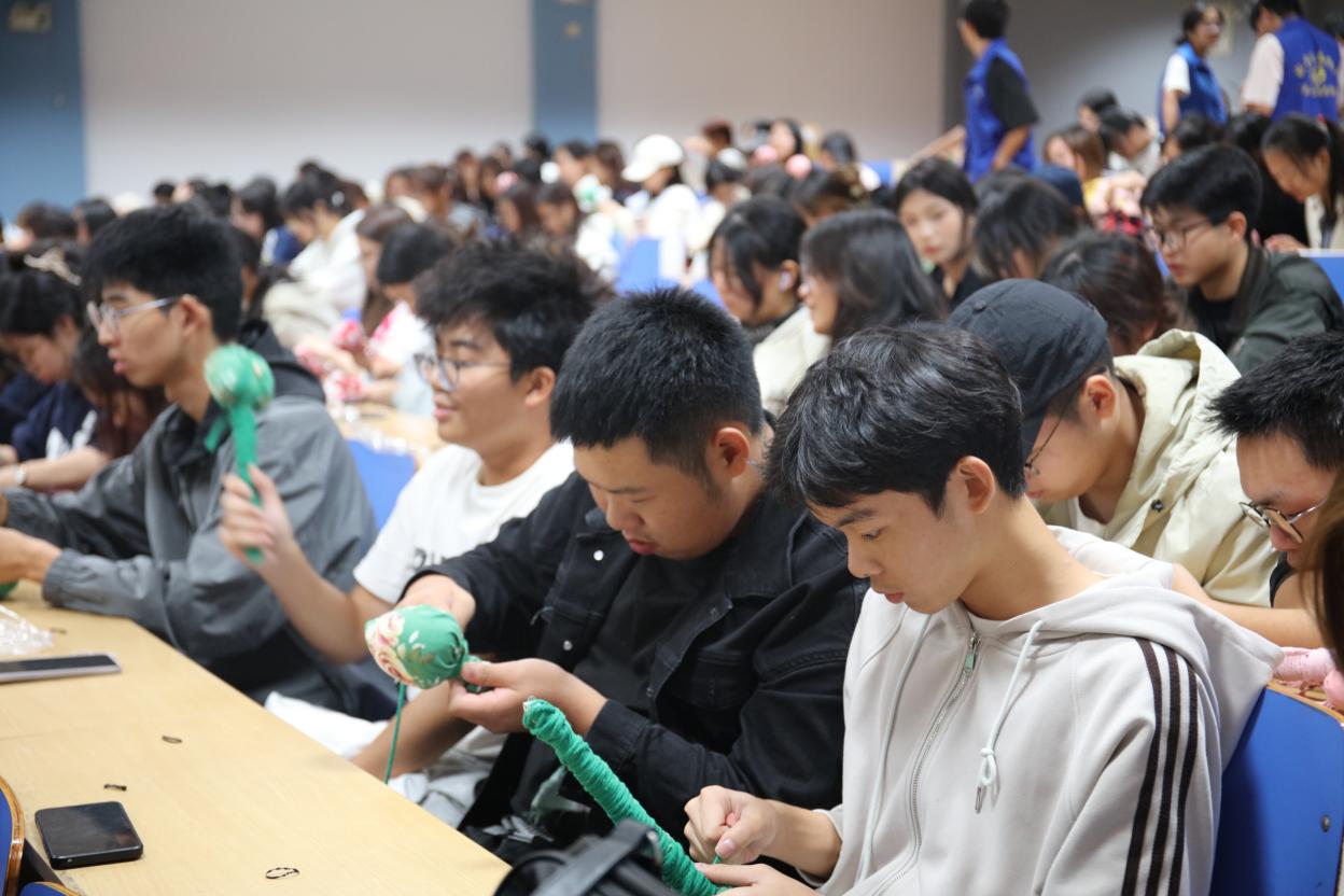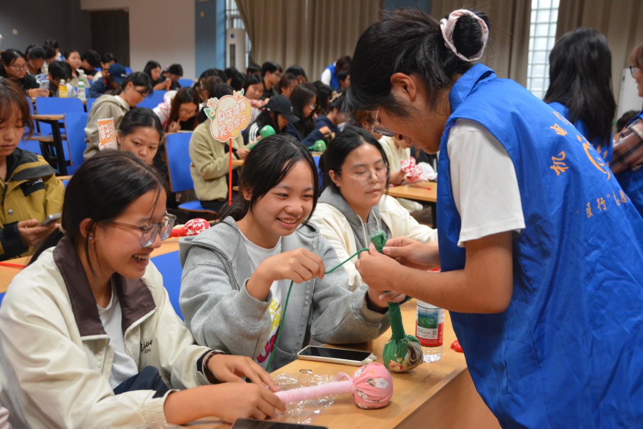 活动现场,同学们热情高涨,不仅亲手参与艾草锤制作,还融入巧思为作品做个性化装饰——有人绘上清新纹样,有人缀上彩色挂绳;制作间隙,大家一边分享缠绕棉绳、固定艾草的小技巧,一边交流寝室角落清洁、垃圾分类的实用方法。现场专门设置的“艾草与环境治理”互动问答环节,更围绕“宿舍摆放艾草锤的最佳位置”“基孔肯雅热的蚊虫防治要点”“寝室卫生环境治理小妙招”等实用问题展开讨论,同学们踊跃发言、互相补充,热闹的氛围中满是对改善寝室环境的积极思考。