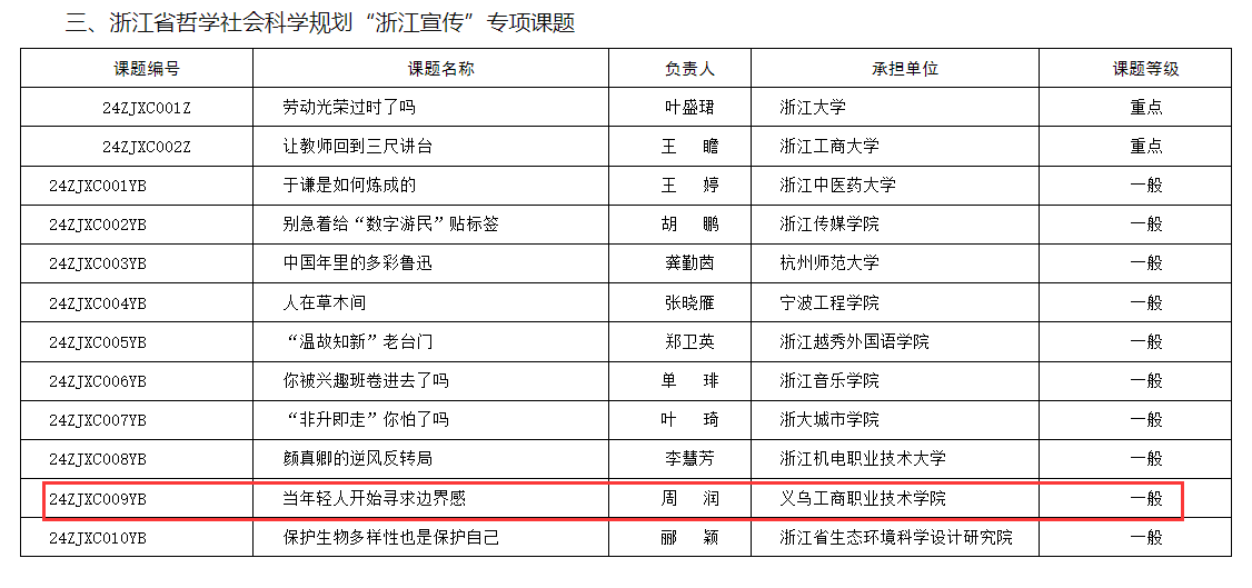 根据《浙江省哲学社会科学规划课题管理办法》,经浙江省哲学社会科学工作办公室审批,“当年轻人开始寻求边界感”立项为2024年度浙江省哲学社会科学规划“浙江宣传”专项课题,课题编号24ZJXC009YB。