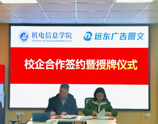 在深化产教融合、推动教育创新的背景下,远东广告与机电信息学院携手开启校企合作新篇章。12月9日,双方在校企合作签约暨揭牌仪式上签署合作协议,并为“小印同学工作室”揭牌,标志着双方合作的正式启航。