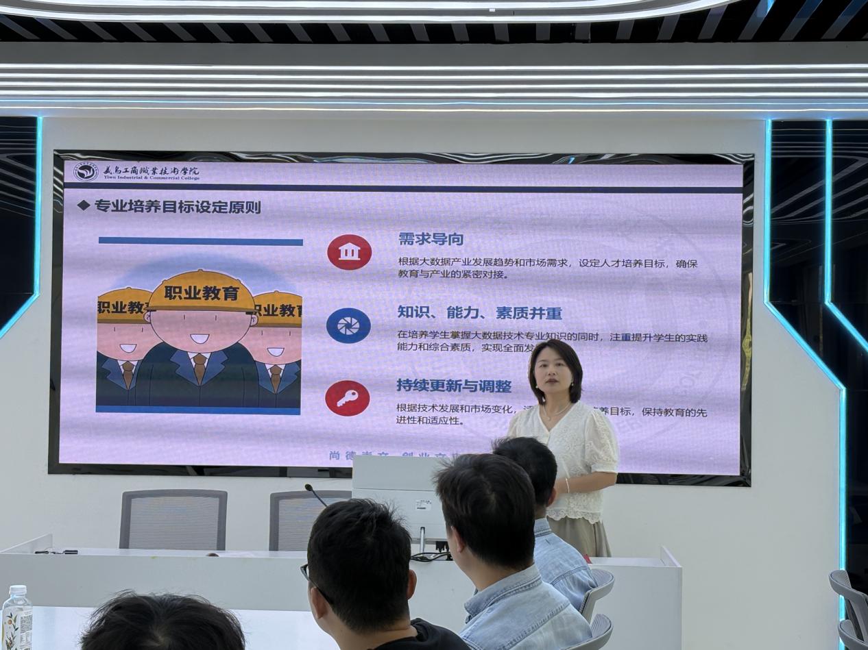 为深化产教融合、推进教学改革,4月14日,机电信息学院大数据技术专业教研室开展“说课程”“说课堂”系列教研活动,聚焦课程优化、教学创新及校企协同育人,全体教师共探职教高质量发展路径。首先陈静老师对专业建设情况做了整体介绍。
