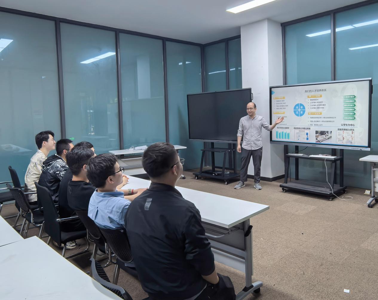 教研室明确未来将从三方面推进工作:一是优化课程资源,重点完善《工业机器人现场编程》等核心课程教案,补充微课视频与典型故障案例库,强化教学实用性;二是深化校企合作,联合本地智能制造企业开发实训项目,组织学生参与工业机器人安装调试、产线运维等实践任务,推动“课堂-车间”双向衔接;三是夯实师资能力,分批选派教师赴企业参与技术实践,提升教师对行业新技术、新工艺的教学转化水平。专业建设将立足企业真实需求,聚焦学生技能培养,确保教学内容“学得会、用得上”,为区域智能制造产业输送更多实干型技术人才。