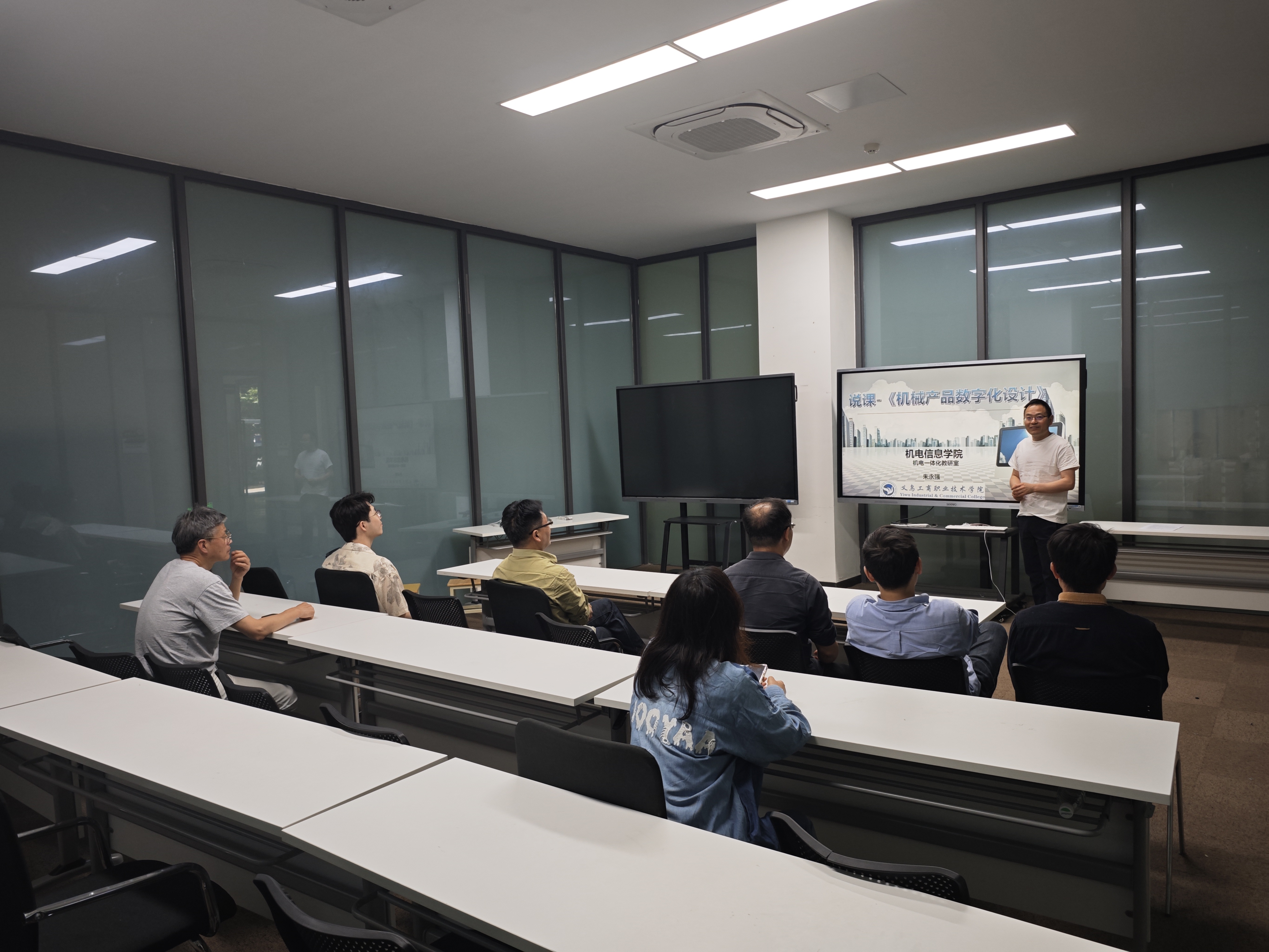 在“说课程”环节,三位骨干教师分别说了《机械产品数字化设计》《数控机床装调与维修》《工业机器人现场编程》这三门课程。从课程与岗位适配情况、课程内容架构、课程思政体系搭建及实施路径、产教融合在课程教学中的具体实践等方面,展开深入细致的剖析。