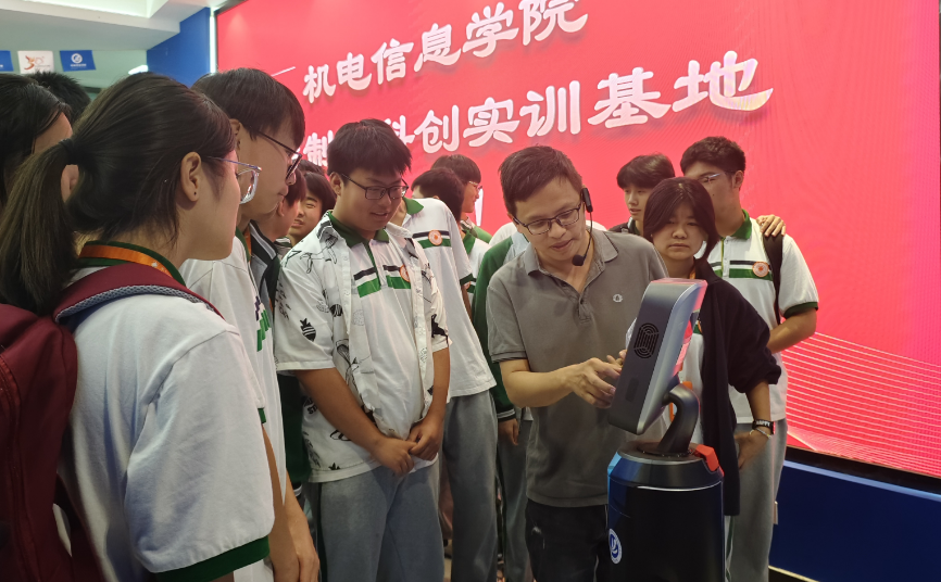 短暂的中场休息后,师生们移步智能制造实训中心和学生技能工作室。在这里,同学们近距离观摩了学院先进的实训设备,了解了学生创新项目和技能竞赛训练的场景,切身感受了学院在应用型人才培养方面的雄厚实力,也对智能制造等前沿技术有了更直观的认识。