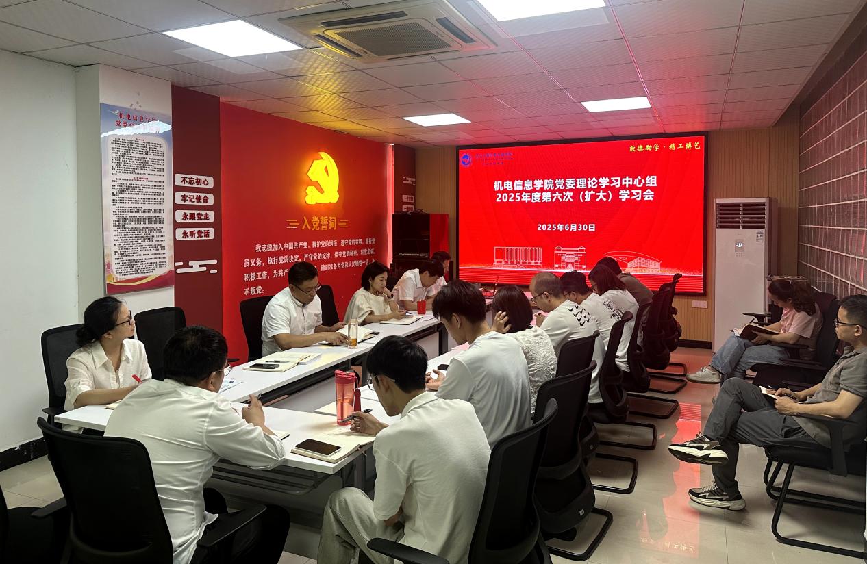 6月30日上午,机电信息学院党委理论学习中心组举行2025年第六次学习会,传达学习习近平总书记关于师德师风建设的重要论述、习近平总书记对“十五五”规划编制工作作出的重要指示精神,研究部署推进落实工作。学院领导班子成员、专业主任、党支部书记、办公室、教科办、学工办、团委、继教部负责人,纪委委员、组织员,全体行政人员参加会议。