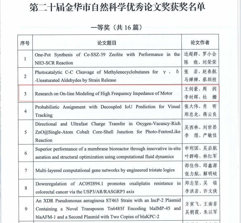 学院博士团队在电子测量领域取得突破,王剑豪博士在该领域顶级期刊《IEEE Transactions on Instrumentation and Measurement》(中国科学院2区)上发表了最新研究成果。论文题目为《Research on On-line Modeling of High Frequency Impedance of Motor》,由王剑豪、周润、李时辉老师等共同参与完成。