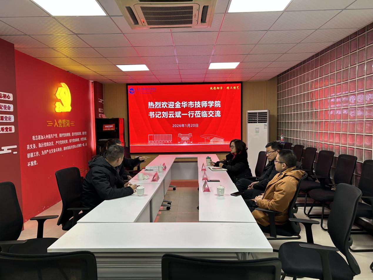 1月20日上午,金华市技师学院党委书记刘云斌一行莅临我院,围绕“中高职一体化技能人才合作培养”主题进行深入交流。学院负责人及相关工作人员陪同走访、参加座谈。