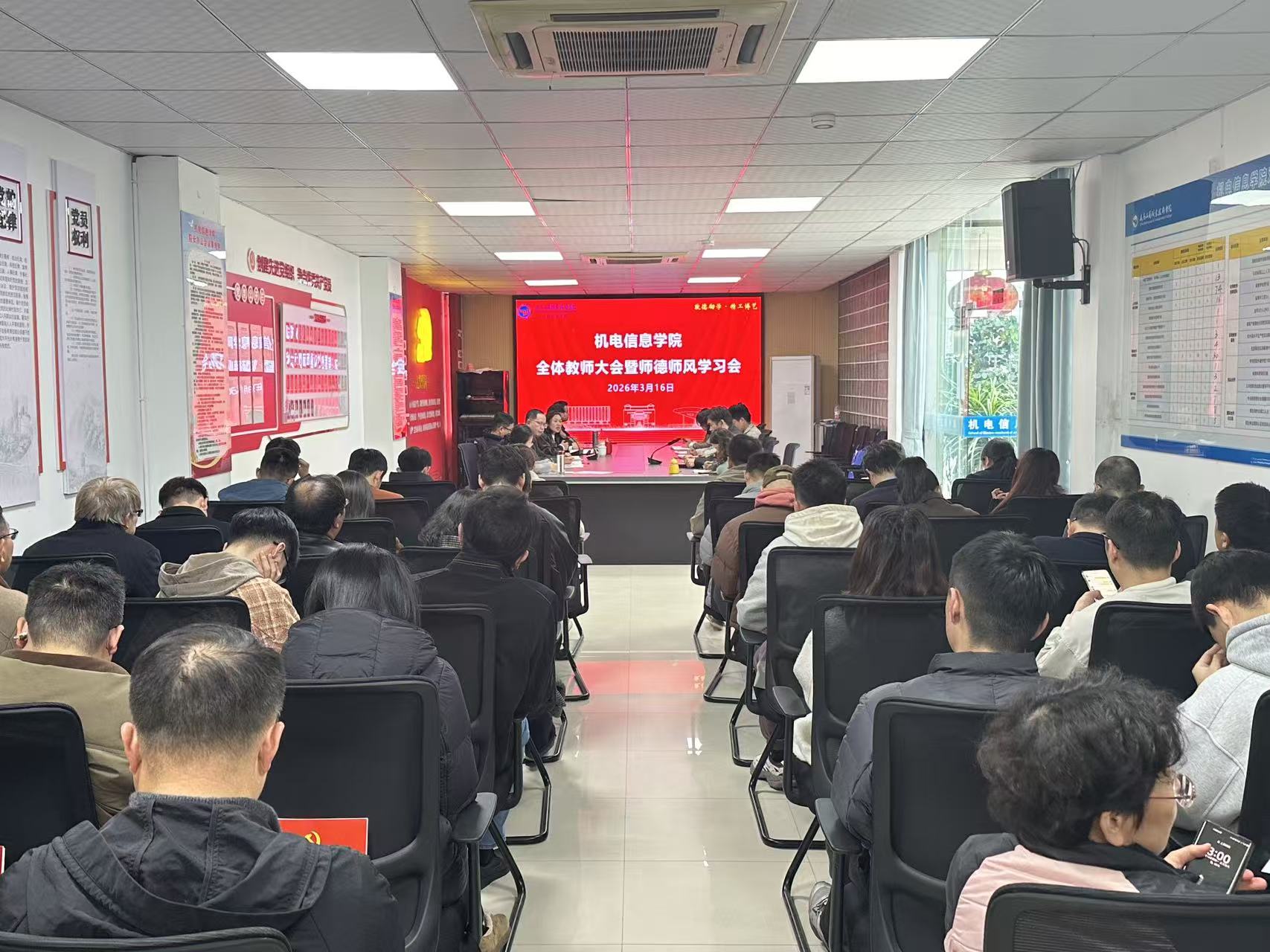 一年之计在于春。3月16日下午,机电信息学院召开新学期教职工会议暨师德师风专题学习会。全体教职工精神饱满、热情高涨,在凝心聚力中启航机电信息学院的发展新篇。学院领导班子成员、全体教职工参加会议。